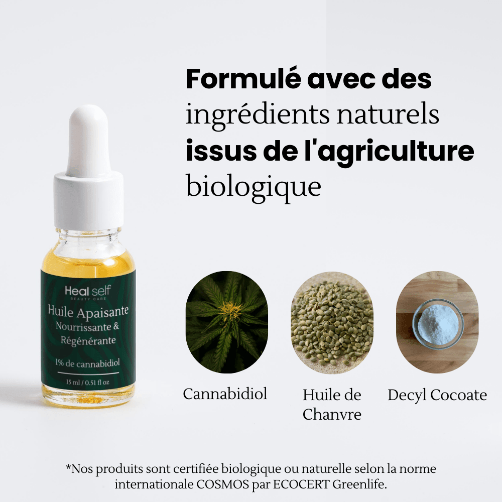 Transformez votre routine de soins avec cette huile apaisante, certifiée bio et végane. Enrichie avec 1% de cannabidiol, elle calme les irritations, équilibre la production de sébum et hydrate en profondeur pour un teint lumineux et éclatant de santé en quelques jours !